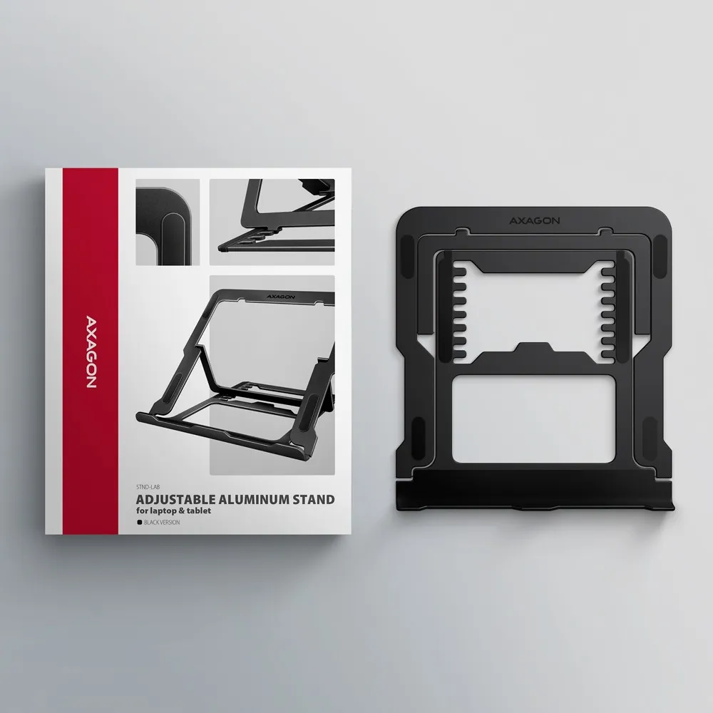 AXAGON STND-LAB Podstawa do laptopów aluminiowa 10-17,3 cala 8 regulowanych pozycji, Czarna
