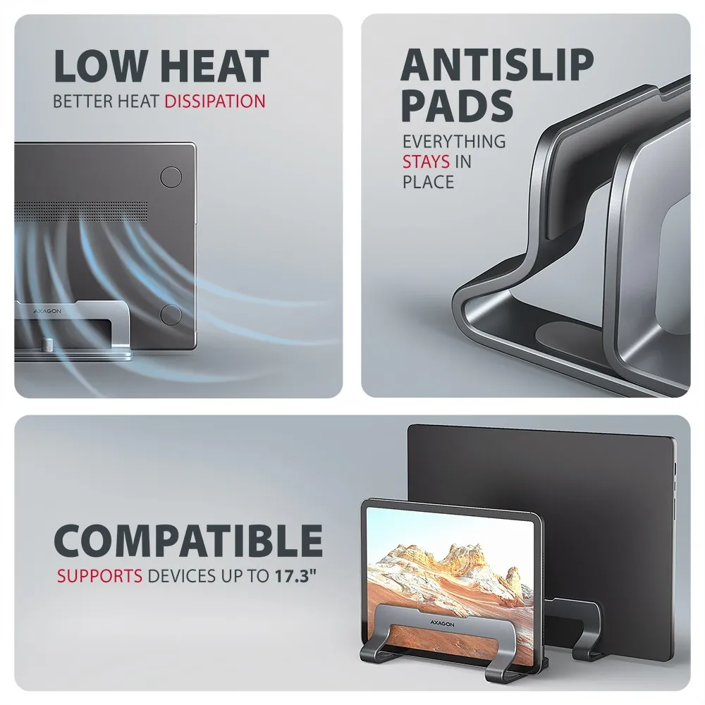 AXAGON STND-VG Podstawa do laptopów aluminiowa 10-17,3 cala pionowa, Szara