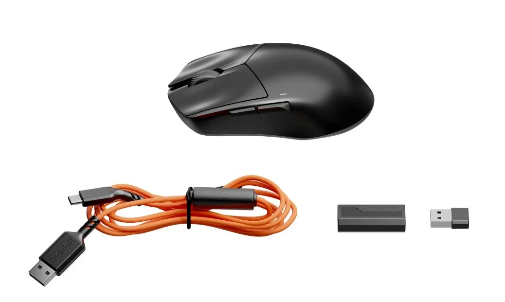 Nie musisz wymieniać baterii AA! Wbudowana bateria wystarcza na 110 godzin przy częstotliwości odpytywania 1000 Hz (lub czasie reakcji 1 ms). Aby zapewnić tak długą żywotność baterii w lekkiej myszy, bateria o dużej pojemności to za mało. Starannie dobrany mikrokontroler Nordic Semiconductor nRF54H20 i sensor PixArt w połączeniu ze zrównoważonym rozwojem oprogramowania układowego zapewniają idealne połączenie wydajności i żywotności baterii. Nie musisz nawet przerywać gry podczas ładowania, możesz również używać Dark Perk Sym razem z przewodem USB A do C o długości 1,8m.