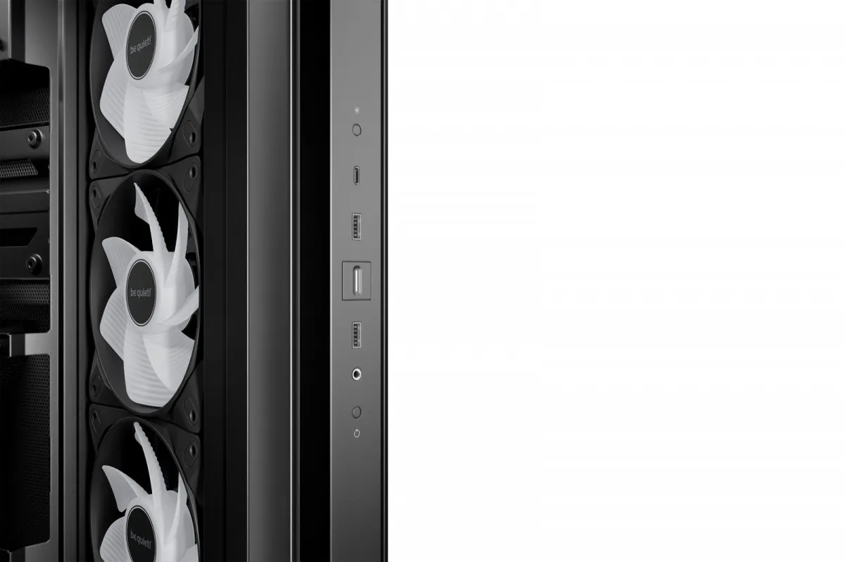 Light Base 500 LX Black posiada 4 preinstalowane wentylatory Light Wings LX. Tylny wentylator to Light Wings LX 120mm PWM, wentylatory z boku to Light Wings LX 120mm PWM z odwróconymi łopatkami. Wszystkie wentylatory są wyposażone w 16 diod LED wewnątrz piasty wirnika, co zapewnia niepowtarzalne podświetlenie ARGB. Odwrócone łopatki wentylatora zapewniają, że ich ładna strona jest widoczna przez cały czas.