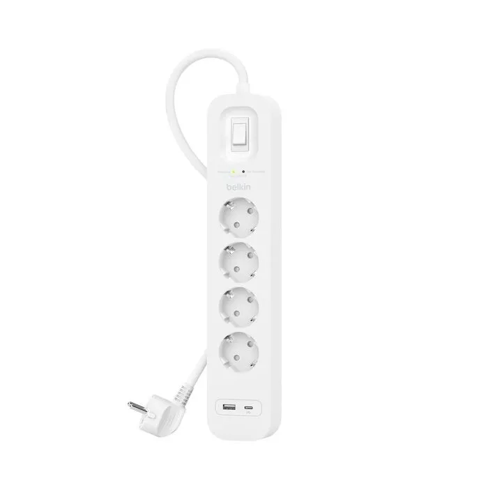 Peryferia i eksploatacjaBelkin Listwa zasilająca SurgePlus 4x schuko 1xUSB-A 1xUSB-C 525J 2m