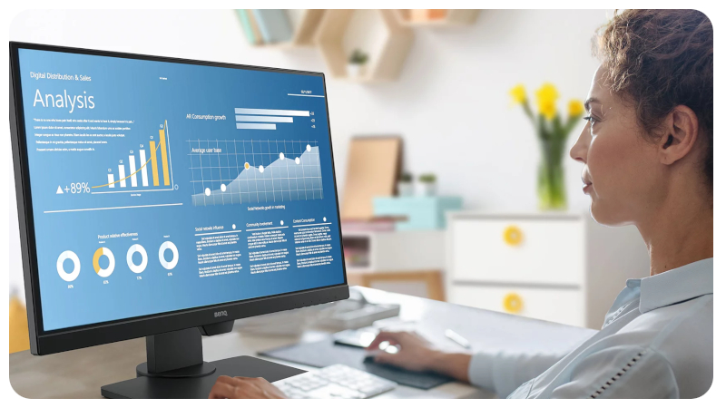 Benq BL2480T to monitor, który łączy w sobie funkcjonalność z niskim poborem energii. Doskonale wkomponuje się w Twoje domowe stanowisko lub biuro. Urządzenie zostało wyposażone w panel Full HD, który gwarantuje wyglądny przegląd multimediów oraz grafik. Monitor benq BL2480T zadba również o Twój wzrok za sprawą technologii redukcji migotania oraz funkcji redukcji światła niebieskiego.