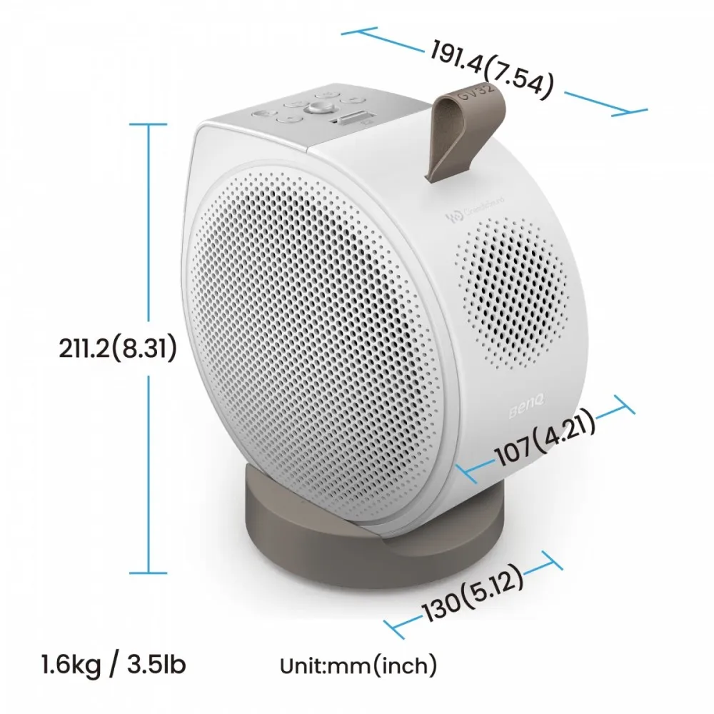 - Nachylenie dla komfortu - Ustaw GV32 na stoliku nocnym, wygodnie regulując podstawkę, aby uzyskać idealne ustawienie obrazu bez bałaganu wokół łóżka.