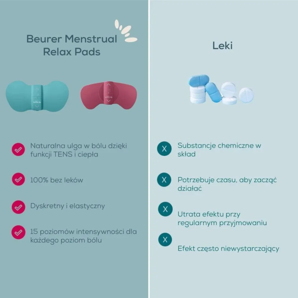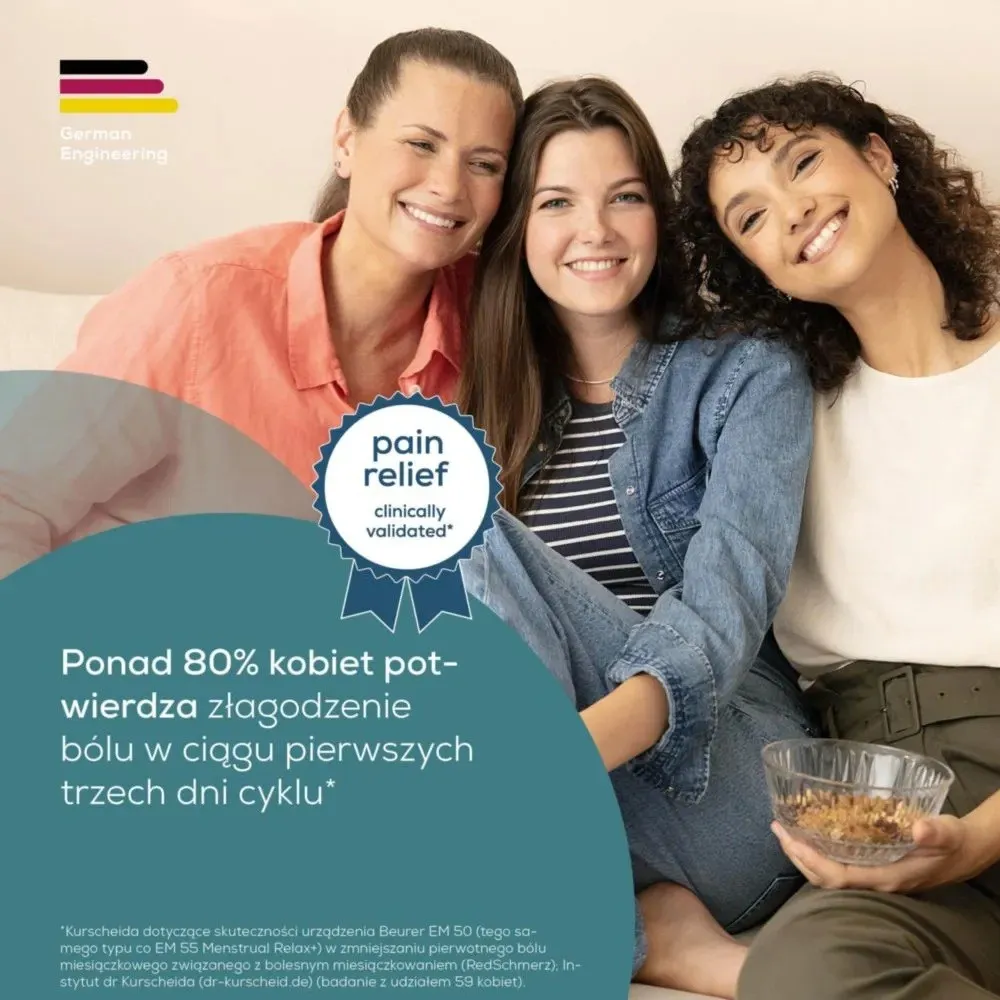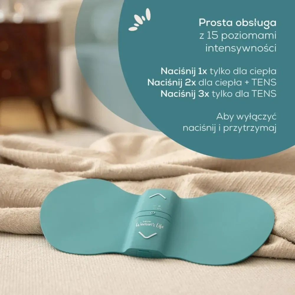 Odkryj łagodzącą ból moc Beurer EM 55 Menstrual Relax+. EM 55 łączy technologię TENS z kojącym ciepłem i jest Twoim niezawodnym towarzyszem w walce z bólami menstruacyjnymi i bólami spowodowanymi endometriozą.