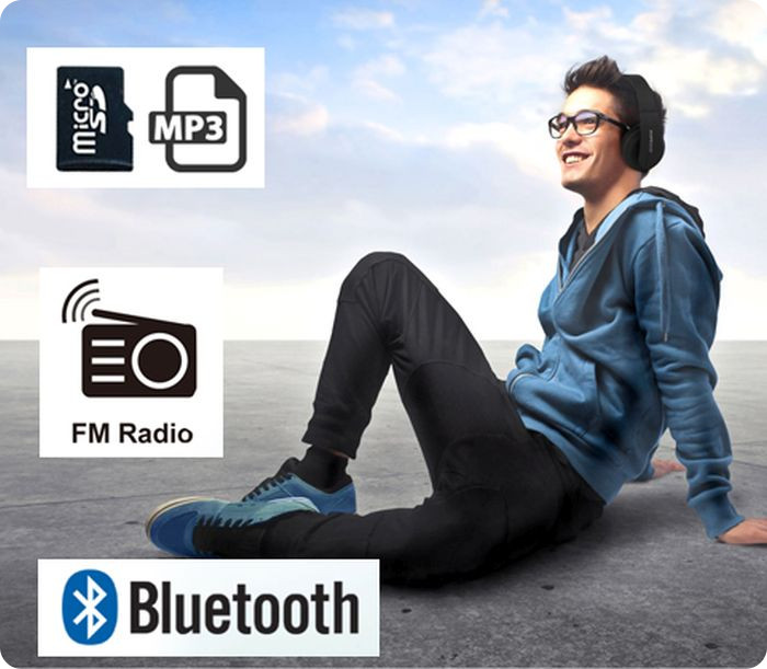 Dzięki wyposażeniu słuchawek w technologię Bluetooth, urządzenie łączy się z dowolnym sprzętem bez konieczności używania przewodów. Dodatkowo wbudowany czytnik kart microSD pozwoli na przekształcenie urządzenia w odtwarzacz MP3 - wystarczy włożyć kartę z nagranymi utworami, by cieszyć się czystymi dźwiękami Twojej ulubionej muzyki. Wbudowane radio FM umożliwi słuchanie ulubionych stacji i najnowszych hitów o każdej porze.