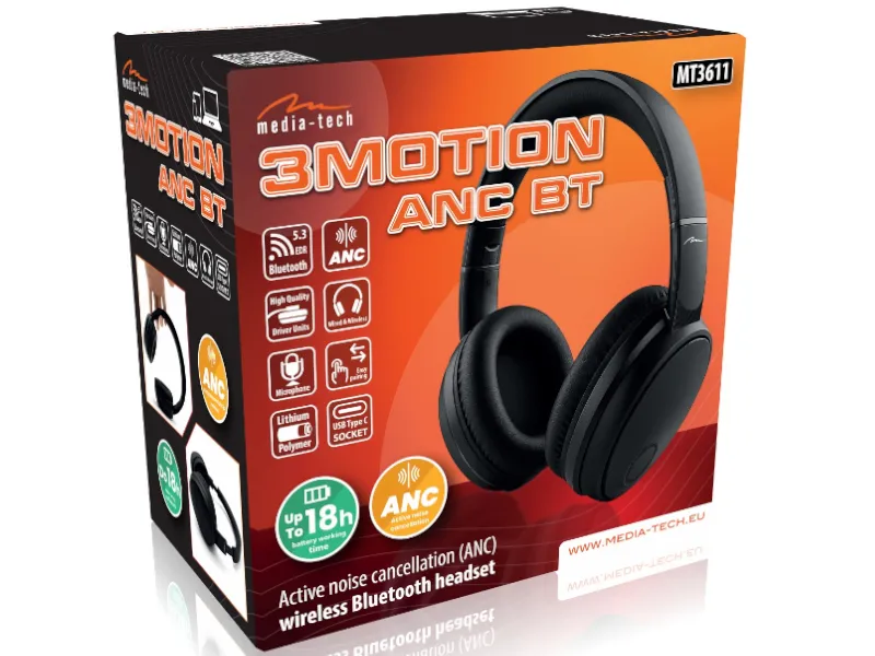 Słuchawki Media-Tech MT3611 3MOTION ANC BT to propozycja stworzona dla osób, które chcą cieszyć się komfortem, czystym dźwiękiem i swobodą nowoczesnych rozwiązań. Dzięki aktywnej redukcji hałasu zanurzysz się w ulubionej muzyce nawet w najbardziej ruchliwych miejscach, a stabilne połączenie Bluetooth zapewni pełną swobodę bez kabli. Lekka, ergonomiczna konstrukcja sprawia, że możesz nosić je godzinami, nie rezygnując z wygody. To idealne połączenie funkcjonalności i stylu — słuchawki, które nadążają za Twoim tempem życia.