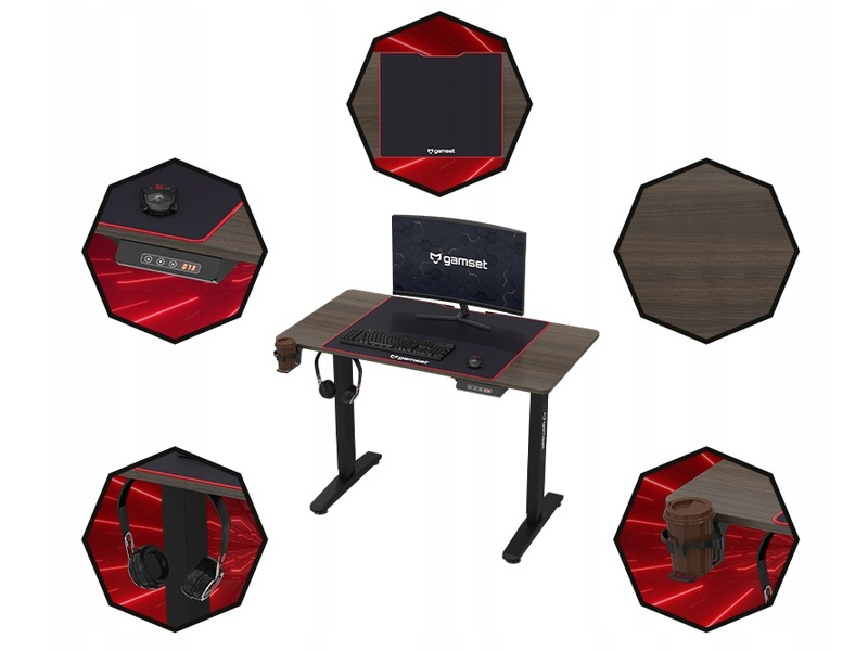 Biurko GAMSET posiada specjalnie przystosowany system porządkowania przewodów, dzięki czemu kable nie będa się plątały w nieporządanych miejscach. W budowie biurka jest również obecny uchwyt na napój. Dodatkowo blat biurka jest również elektrycznie regulowany w wysokościach od 73 do nawet 118 centymetrów. Prędkość podnoszenia się blatu wynosi 21 milimetrów na sekundę. Praca przy biurku odpowiedniej wysokości sprawi, że Twój kręgosłup będzie w dobrej pozycji, przez co Twoja praca będzie efektywniejsza.