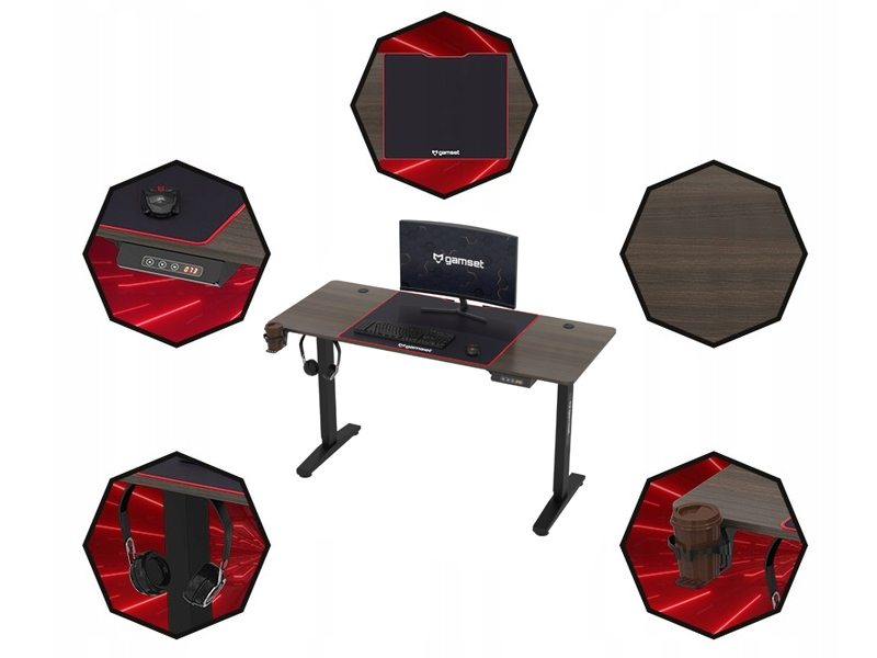Biurko GAMSET posiada specjalnie przystosowany system porządkowania przewodów, dzięki czemu kable nie będa się plątały w nieporządanych miejscach. W budowie biurka jest również obecny uchwyt na słuchawki. Dodatkowo blat biurka jest również elektrycznie regulowany w wysokościach od 73 do nawet 118 centymetrów. Prędkość podnoszenia się blatu wynosi 21 milimetrów na sekundę. Praca przy biurku odpowiedniej wysokości sprawi, że Twój kręgosłup będzie w dobrej pozycji, przez co Twoja praca będzie efektywniejsza.