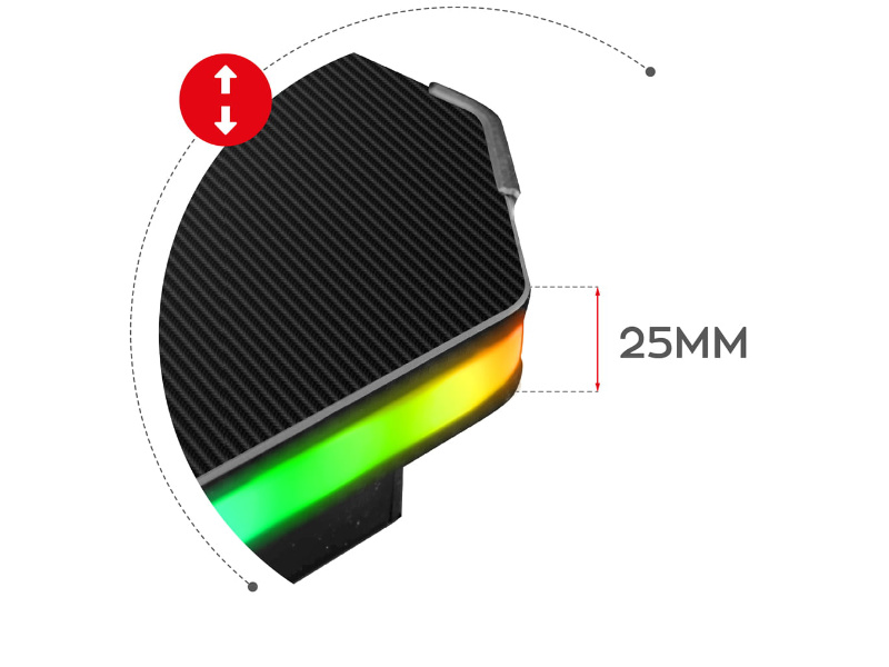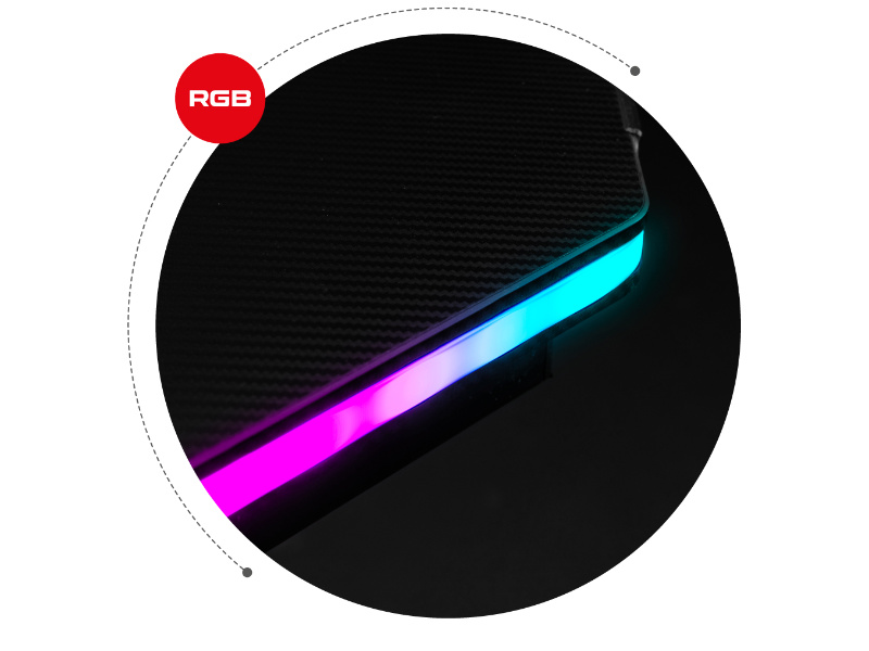 Huzaro Hero 2.5 RGB to wytrzymałe, funkcjonalne biurko wyposażone w podświetlenie RGB LED. Wykończone materiałem imitującym włókno węglowe wygląda świetnie, a w połączeniu z podświetleniem nabiera charakteru. Krawędzie wykonane z półprzezroczystego materiału skrywają diody LED RGB. Emitowane przez nie światło rozświetli całe twoje otoczenie, tworząc niepowtarzalny klimat. Sterowanie odbywa się przy pomocy pilota, dzięki niemu możesz zmieniać barwy, efekty, lub całkowicie wyłączyć diody.