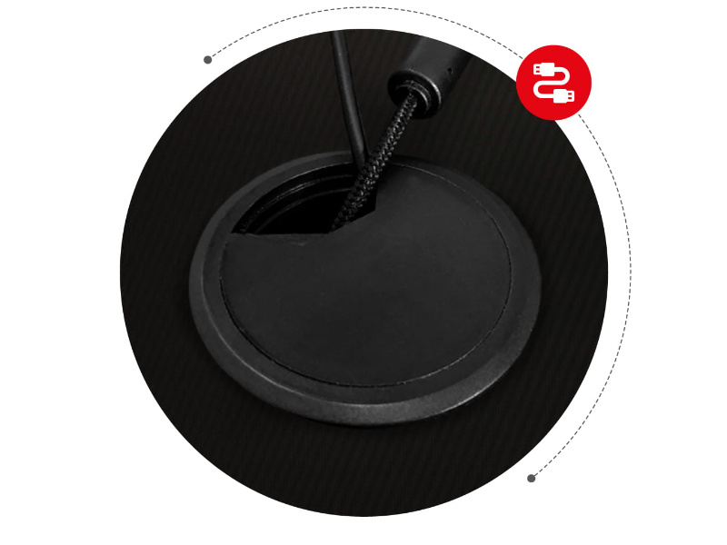 Biurko Huzaro Hero 2.5 RGB ułatwia organizację przewodów. Dzięki dwóm wlotom możesz w prosty sposób poprowadzić kable klawiatury, monitora, myszki i innych urządzeń, zbierając i kierując je tak, aby stały się niewidoczne. Teraz jeszcze łatwiej stworzysz estetyczne centrum dowodzenia.