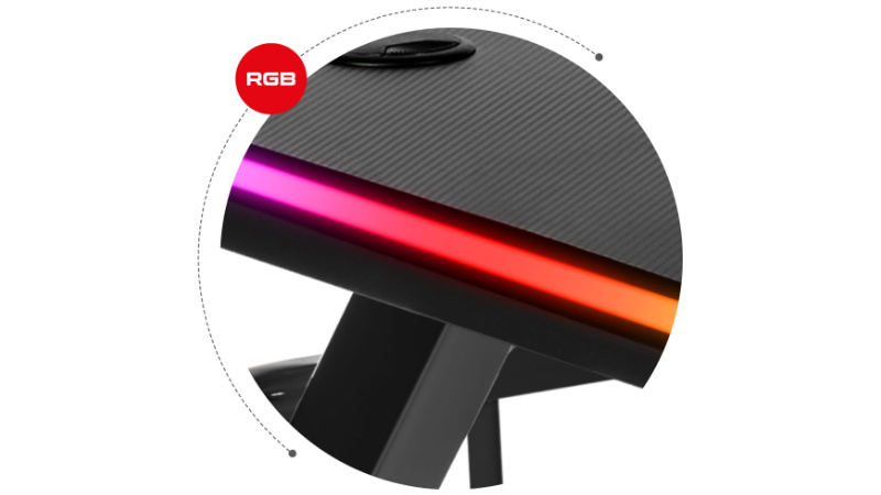 Umieszczone na krawędziach biurka podświetlenie w formie listw RGB LED nadaje biurku niepowtarzalnego gamingowego klimatu. Znajdujące się w pobliżu ściany lub innych mebli rozświetli je ulubionymi kolorami, czyniąc cały pokój Twoim centrum dowodzenia.