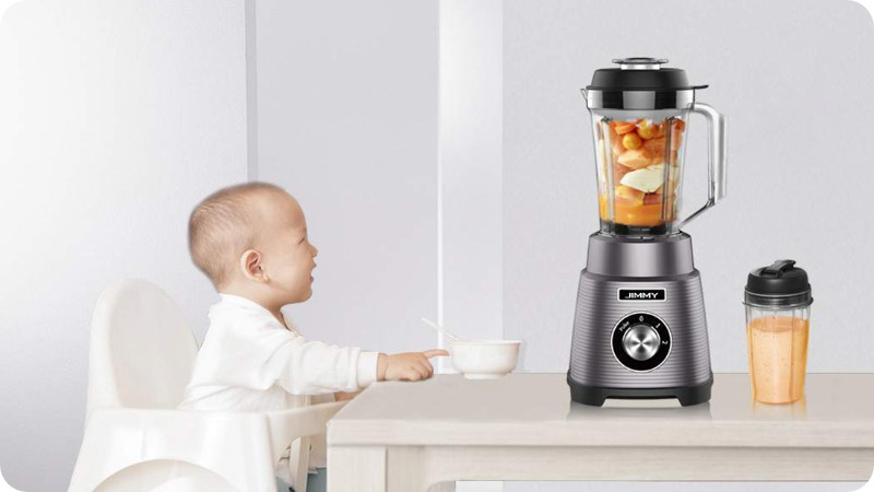 Blender Jimmy posiada kielich o pojemności 0,9 l i waży jedynie 0,5 kg, więc jest praktyczny i prosty w obsłudze. Wykonany z materiałów nie zawierających szkodliwego BPA jest bezpieczny dla Ciebie i Twojej pociechy, przygotuj pyszne obiadki, które pokocha Twoje dziecko.