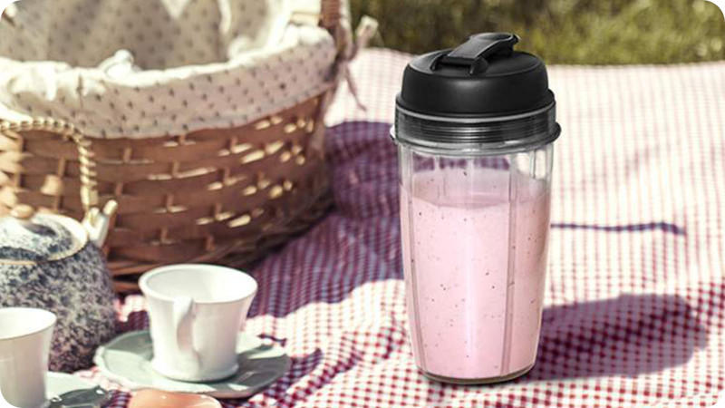 Przygotuj koktajl z ulubionych składników, następnie przelej go do dołączonego przenośnego kubka o pojemności 0,6 l. Ciesz się wspaniałym smakiem w pracy lub na siłowni. Tworzywo sztuczne, z którego wykonano kubek nie posiada szkodilego BPA, więc możesz być spokojny o zdrowie. Nakrętka zapobiega przypadkowym rozlaniom.