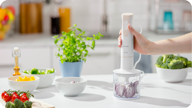 Manewrowanie i obsługa blendera ZHB4571 jest niezwykle prosta i przyjemna ze względu na jego lekką wagę i ergonomiczny kształt. Zaokrąglona końcówka blendera zapobiega rozpryskiwaniu się potraw i umożliwia dokładne miksowanie bez obawy o ubrudzenie się. Dodatkowo mycie urządzenia jest niezwykle proste ponieważ podstawę z ostrzami można łatwo odczepić i wygodnie umyć.