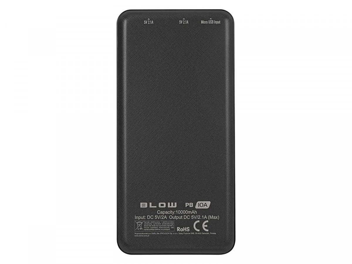 - Port wejściowy: micro USB (DC 5 V / 2 A) szybkie ładowanie powerbanku w 78 h