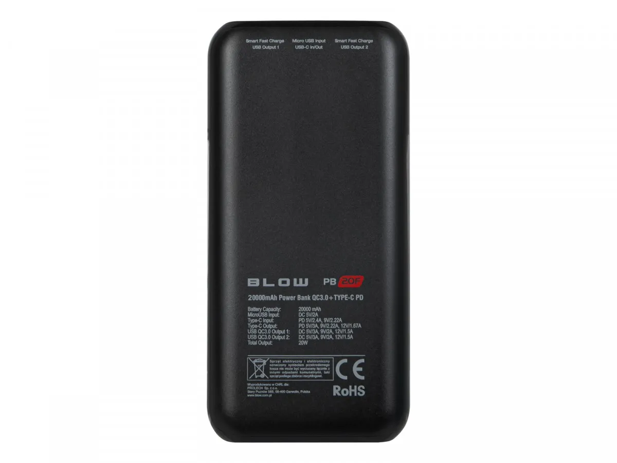BLOW PowerBank 20WPB20F PD 20W 20000mAh Czarny