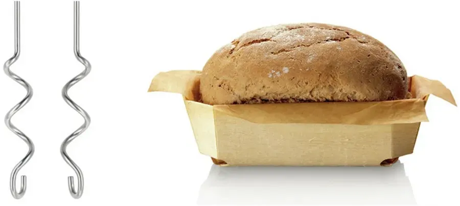 - Wyprofilowane mieszadła ze stali nierdzewnej i haki do ciasta: zapewniają idealne mieszanie, ubijanie i zagniatanie.