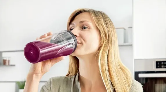 Oszczędzaj czas blendując koktajle bezpośrednio w butelce ToGo. Bezpieczeństwo gwarantuje ochrona przed wylaniem płynu z butelki tzw. SafeLock. Jest to unikalny mechanizm, który zapobiega przypadkowemu otwarciu butelki i zalaniu jednostki napędowej podczas wyjmowania butelki z napędu. Pokrywa butelki ToGo jest również dodatkowo uszczelniona i zapewnia ochronę przed wylaniem płynu z butelki podczas podróży.