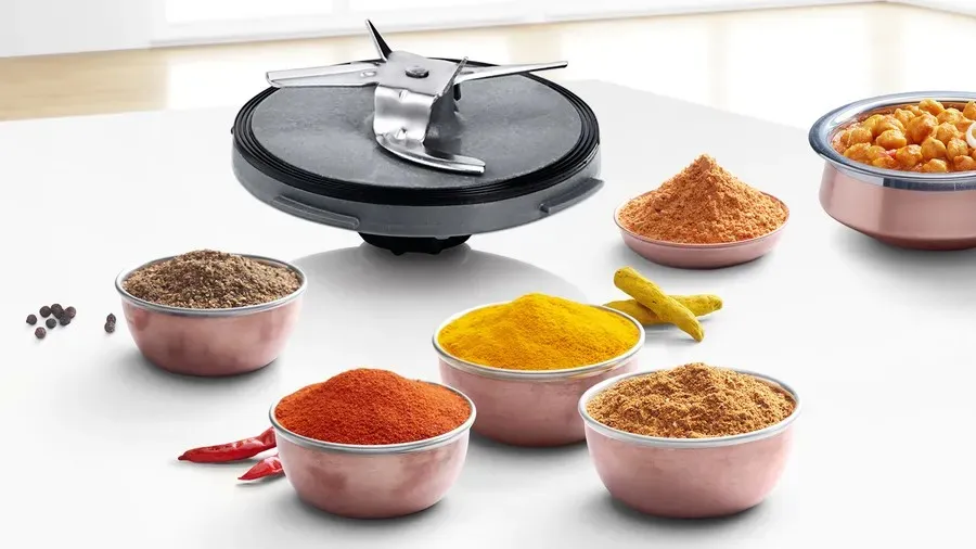 - Poręczność: akcesoria mogą być przechowywane w misie rozdrabniacza, a zatem są zawsze pod ręką. Dzięki specjalnym oznaczeniom akcesoria mogą być zamontowane bardzo szybko.