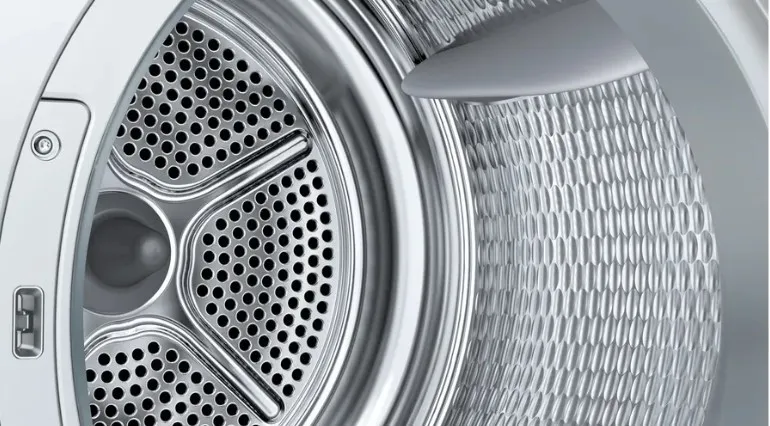 Innowacyjne ściany boczne AntiVibration zostały specjalnie zaprojektowane, aby zapewnić większą stabilność i optymalnie zredukować wibracje.Ulepszona izolacja reguluje również poziom hałasu, dzięki czemu suszarki Bosch są wygodne i ciche, nawet podczas niezakłóconego snu.