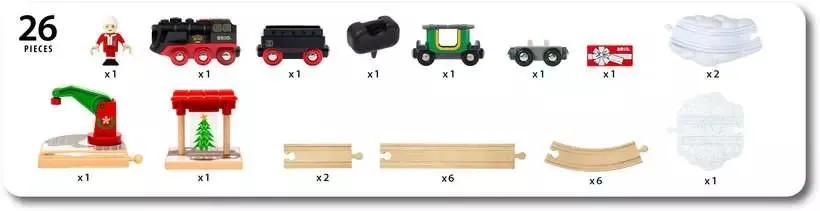 Dodaj wykończenia swoim ozdobom bożonarodzeniowym dzięki zestawowi świątecznego pociągu na parze 36014. Zbuduj ten bożonarodzeniowy pociąg wokół podstawy swojej choinki i obserwuj, jak parujący pociąg jeździ z realistycznymi efektami pary. Silnik zasilany akumulatorem wytwarza w trakcie ruchu bezpieczną w dotyku parę i można go łatwo napełnić, wykorzystując obciążenie wodą. Ten świąteczny zestaw pociągów zawiera także zaśnieżone tory, stację kolejową na biegunie północnym z choinką i oczywiście postać Świętego Mikołaja.