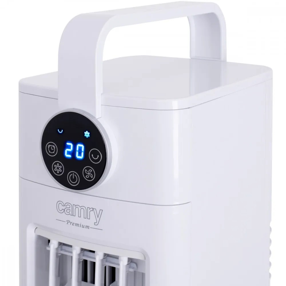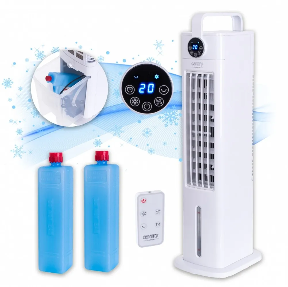 Wielofunkcyjny klimator kolumnowy 3w1 o wysokiej wydajności. Funkcje chłodzenia, nawilżania, a nawet oczyszczania powietrza czynią go doskonałym nabytkiem do każdej przestrzeni. Użytkownik może wybierać z pośród 3 prędkości nawiewu. Klimator ma wbudowany 3,5 L zbiornik na wodę, a dzięki dołączonym 2 pojemnikom z żelem, które można zamrozić w lodówce aby potem przełożyć do zbiornika z wodą, urządzenie może wydajnie chłodzić i nawilżać powietrze. Dla wygody użytkowania urządzenie posiada panel dotykowy LCD. Urządzenie może również zostać ustawione na konkretny czas pracy, dzięki wbudowanemu timerowi 1-12 godzin. Przepływ powietrza to 1188 m3/godzinę.