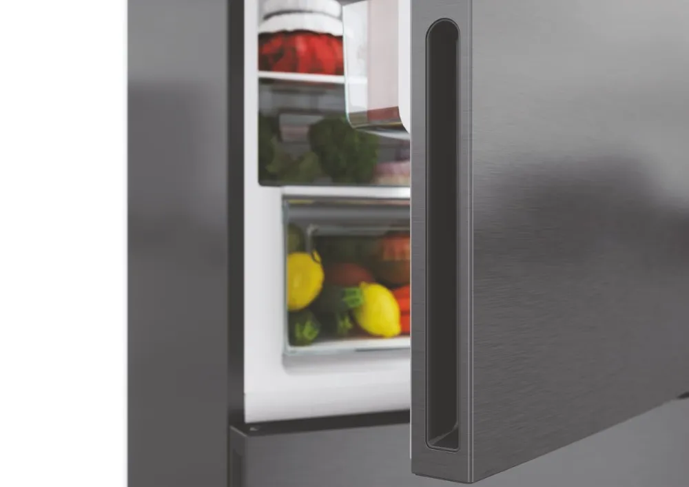 Lodówka została wyposażona w półki z bezpiecznego szkła, co sprawia, że możesz bez obaw i w bezpieczny sposób przechowywać swoją żywność. Ich zaokrąglona i elegancka konstrukcja sprawia, że są łatwe w czyszczeniu.