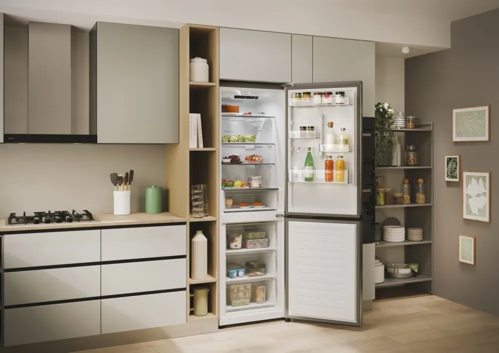 Lodówka Candy Fresco doskonale współgra z wystrojem Twojej kuchni. Uchwyt i eleganckie wykończenie sprawiają, że idealnie komponuje się z blatem, a ukryte zawiasy i otwierane pod kątem 90°C drzwi, dają duże możliwości aranżacji.