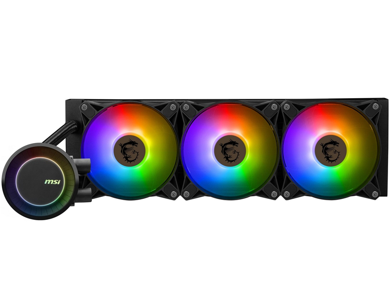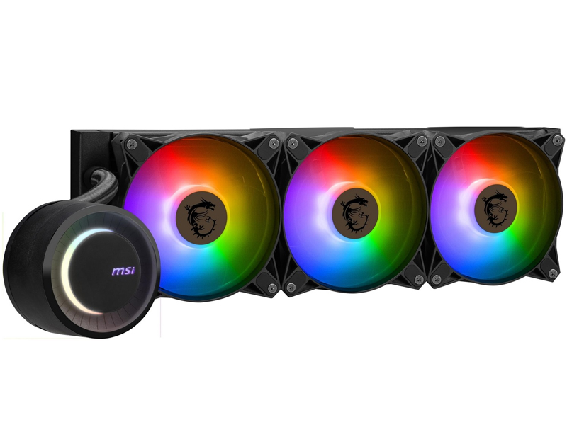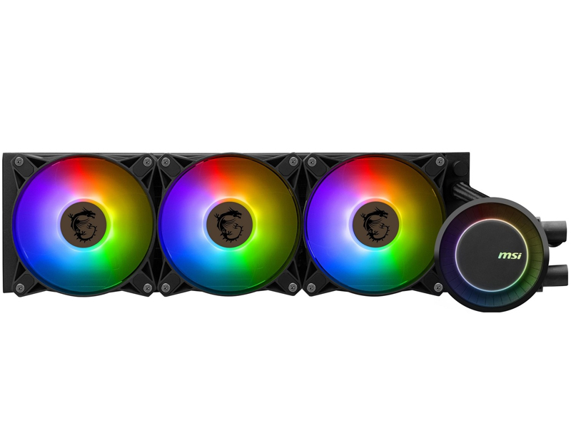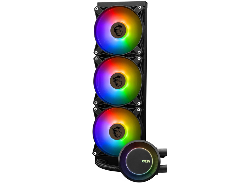 Położenie zainspirowanej zaćmieniem słońca, ręcznie obracanej do 270°, głowicy bloku wodnego z systemem podświetlenia ARGB i z logo MSI może być dostosowane do dowolnej, montażowej orientacji przestrzennej systemu chłodzenia wynikającej z ułożenia podzespołów wewnątrz obudowy komputera. Efekty świetlne generowane przez oświetlenie ARGB głowicy bloku wodnego oraz wentylatora systemu chłodzenia możesz spersonalizować za pomocą narzędzi Mystic Light dostępnych w oprogramowaniu MSI Center.