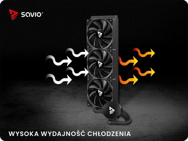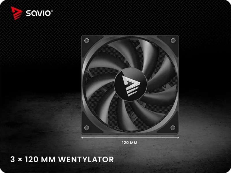 W zestawie znajdują się trzy wentylatory o średnicy 120 mm, które pracują w zakresie 600–1800 RPM (rotations per minute – obrotów na minutę). Pozwala to na dostosowanie ich prędkości do aktualnego zapotrzebowania – od cichej pracy w trybie spoczynku po maksymalne chłodzenie w trybie pełnego obciążenia. Konstrukcja wentylatorów zapewnia efektywną cyrkulację powietrza przy niskim poziomie hałasu.