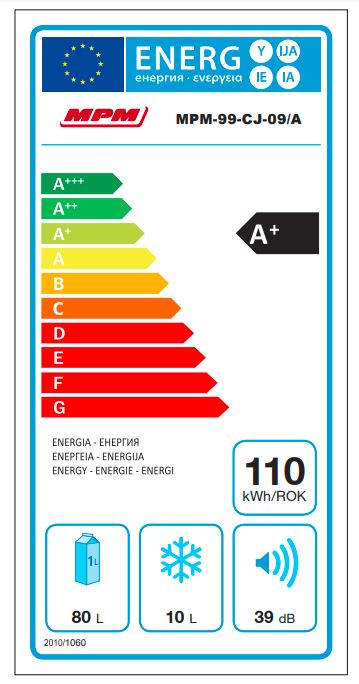 Chłodziarka MPM-99-CJ-09/AA to urządzenie o kompaktowych wymiarach, co sprawia, że łatwo można dopasować ją do wymogów wnętrza. Pracuje w klasie energetycznej F pozwalając ograniczyć zużycie energii do 107 kWh w skali roku.