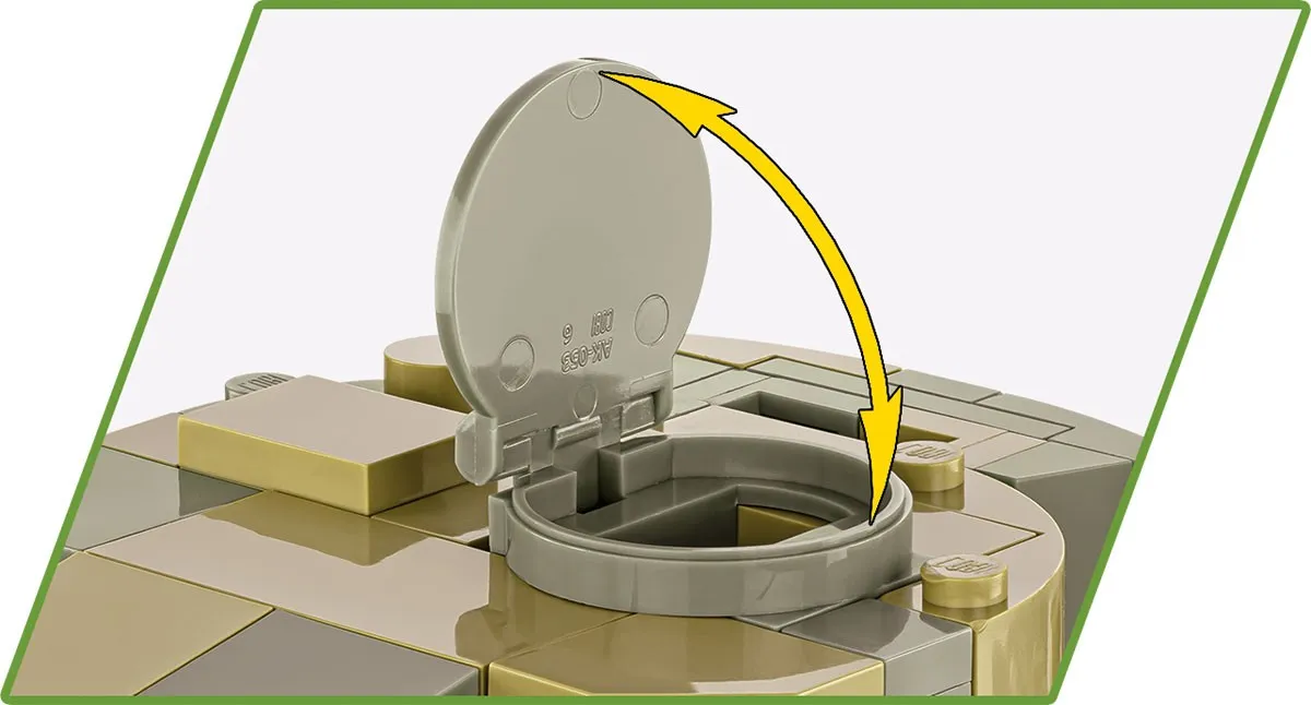 Klockowy Tygrys 131 został odwzorowany z dbałością o szczegóły w bardzo popularnej skali 1:35! Warto podkreślić, że jest to pierwszy raz, gdy COBI wypuszcza legendarnego Tygrysa w tym rozmiarze! Model posiada ruchome elementy takie jak: wieża i lufa działa oraz obracające się koła i gąsienice. Dopracowany zestaw składa się z 898 elementów i wiernie odzwierciedla oryginalne kształty swego historycznego pierwowzoru. Nasz potężny klockowy czołg został pokryty wysokiej jakości nadrukami, które się nie ścierają. Na szczególną uwagę zasługuje bliska oryginałowi kolorystyka, która sprawia, że model wygląda olśniewająco! W zestawie znajduje się mini model silnika Maybach, który można wyeksponować obok modelu lub umieścić w czołgu pod klapą serwisową. Model posiada ruchome koła i gąsienice składające się z wielu ogniw. W trakcie zabawy można jeździć czołgiem i obserwować pracującą trakcję gąsienicową! Włazy są otwierane i pod nimi znajduje się miejsce dla standardowych figurek COBI. Fgurka przedstawia dowódcę czołgu w tropikalnym umundurowaniu. Całość zestawu uzupełnia biała tabliczka z nadrukowaną nazwą czołgu oraz logotypem The Tank Museum!
