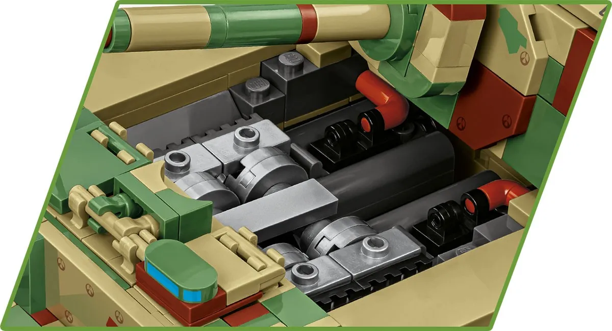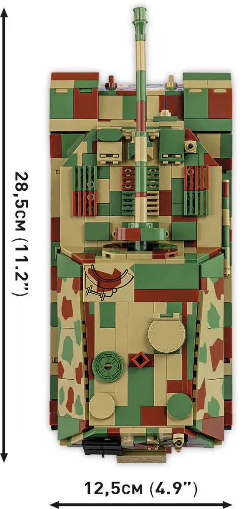 Elefant to ciężkie działo pancerne / niszczyciel czołgów używane przez Niemców w czasie drugiej wojny światowej. Wśród fanów historii oraz techniki wojskowej pojazd do dzisiaj cieszy się ogromnym zainteresowaniem i rozpoznawalnością! Klockowy model tego bardzo znanego pojazdu z okresu drugiej wojny światowej został zaprojektowany w skali 1:28 przy wykorzystaniu 1252 elementów i ma aż 28,5 cm długości. Klocki oraz figurka zawierają wysokiej jakości nadruki. Tutaj nie znajdziesz naklejek!