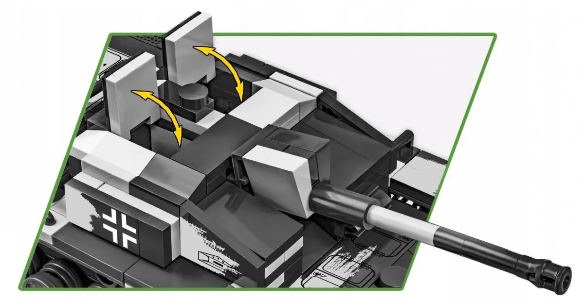 Co wolisz zbudować? Najpopularniejsze niemieckie działo szturmowe StuG III czy straszliwy miotacz płomieni? To jest Twoja decyzja! My dostarczamy klocki i instrukcję budowy! Klockowy model StuG III i Flammpanzer zostały opracowane w pasującej do figurek skali 1:35 przy wykorzystaniu ponad 500 elementów. Model ma ok. 21 cm długości i kolorystykę nawiązującą do działań w okresie zimowym. W modelu znajduje się klapa serwisowa z klockowym silnikiem. Dzięki działającej trakcji gąsienicowej możesz poruszać modelem! W zestawie zastosowano wysokiej jakości trwałe nadruki. W komplecie znajduje się atrakcyjna figurka załoganta działa szturmowego, tabliczka z nazwą oraz klocki niezbędne do budowy wybranej wersji pojazdu! Zestaw zapewnia ekscytującą budowę i idealnie uzupełnia kolekcję drugowojennych pojazdów wydawanych w skali 1:35. To kolejny pokaz możliwości wysokiej jakości modelarstwa klockowego! Buduj historię, klocek po klocku!