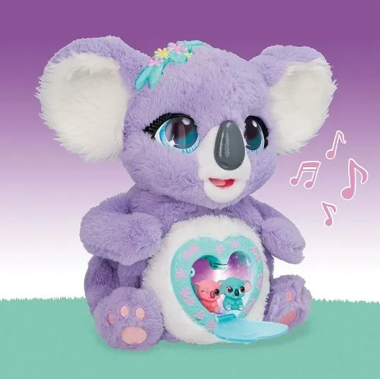 Poznaj mamę koala, niezwykle uroczą, mięciutką i interaktywną zabawkę, która nie tylko wydaje dźwięki i świeci, ale również rodzi malutkie koale! Dzięki swemu lawendowemu futerku, dużym niebieskim oczom i kolorowym, kwietnym ozdobom na głowie mama koala wygląda jak bohaterka z bajki!