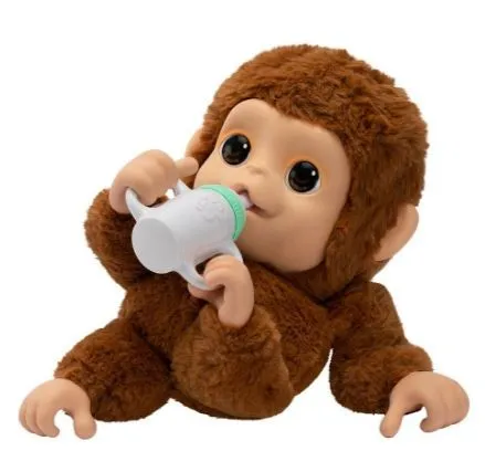 Małpka Mango jest miękka w dotyku i przyjemna do przytulania. Doświadcz zabawy z Baby Monkey, bawiąc się z nią do góry nogami, karmiąc ją butelką lub obserwując, jak ssie kciuk.