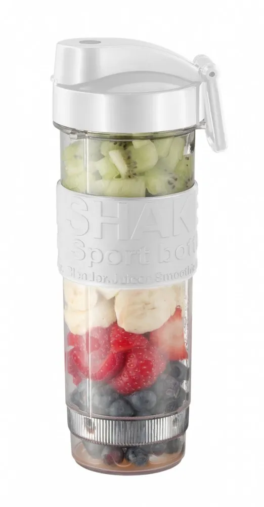 Butelki miksujące można łatwo zamontować bezpośrednio na bazę smoothie makera, co zapewnia wygodę użytkowania. Każda z nich jest wyposażona w silikonowy uchwyt zapewniający bezpieczne trzymanie oraz pokrywkę z ustnikiem i zaczepem, ułatwiającym przenoszenie. Dzięki temu rozwiązaniu możesz zabrać swój ulubiony napój wszędzie, bez obaw o rozlanie.