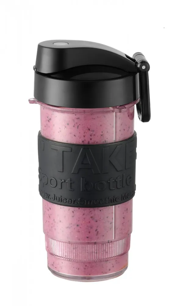 Butelki miksujące można łatwo zamontować bezpośrednio na bazę smoothie makera, co zapewnia wygodę użytkowania. Każda z nich jest wyposażona w silikonowy uchwyt zapewniający bezpieczne trzymanie oraz pokrywkę z ustnikiem i zaczepem, ułatwiającym przenoszenie. Dzięki temu rozwiązaniu możesz zabrać swój ulubiony napój wszędzie, bez obaw o rozlanie.