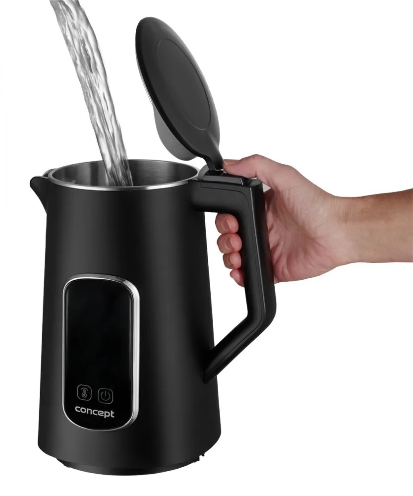 Dzięki specjalnej powierzchni Cool touch z izolacją termiczną zewnętrzna część czajnika pozostaje chłodna w dotyku, nawet gdy wewnątrz gotuje się woda. Nie musisz obawiać się oparzeń przy przypadkowym kontakcie - idealny wybór nie tylko dla gospodarstw domowych z dziećmi. Powierzchnia Cool touch łączy bezpieczeństwo, wygodę i elegancki design, który pasuje do każdego stylu kuchni.