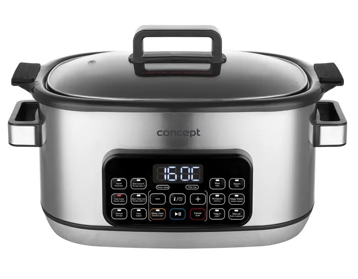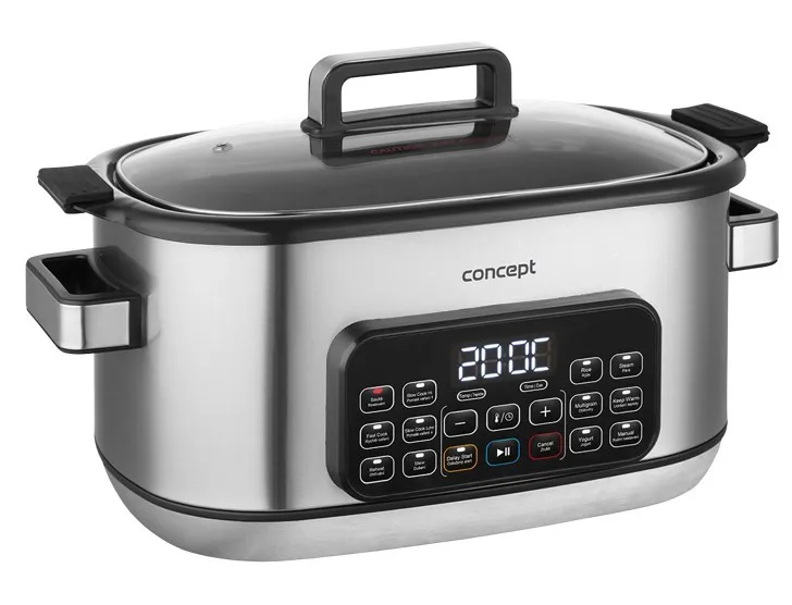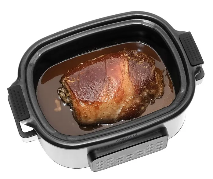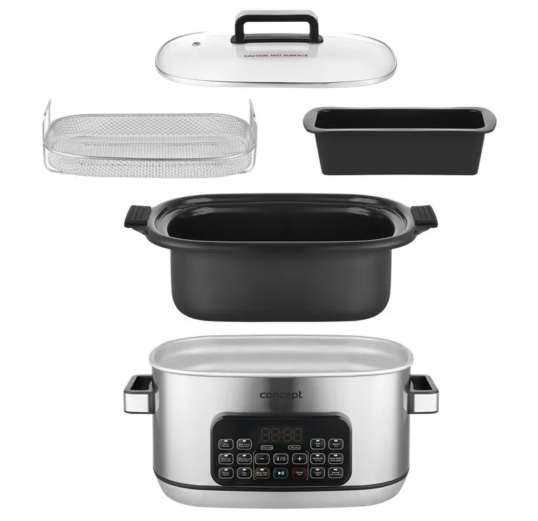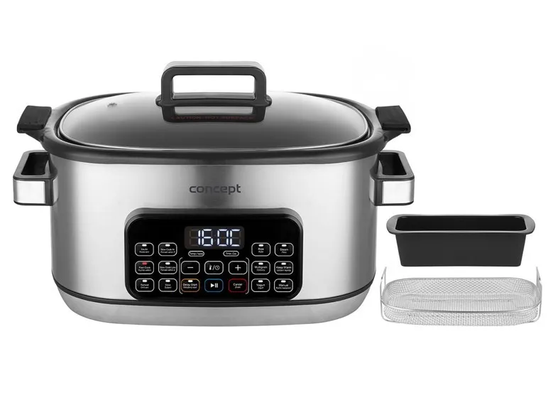 Multifunkcyjny wolnowar Concept CK9000 to praktyczny pomocnik, który oszczędza czas, energię i miejsce na kuchennym blacie. Oferuje 10 automatycznych programów, w tym wolne gotowanie i gotowanie na parze, dzięki czemu z łatwością poradzi sobie z różnorodnymi potrawami. Pokrywa z hartowanego szkła umożliwia wygodną kontrolę gotowania bez konieczności otwierania. Dzięki kompaktowym rozmiarom garnek łatwo przenosić - idealny także na działkę lub wakacje. Concept CK9000 to świetny wybór dla każdego, kto chce gotować prosto, smacznie i bez zbędnego stresu. Dla łatwego startu w zestawie znajduje się także miniksiążka kucharska z przepisami.