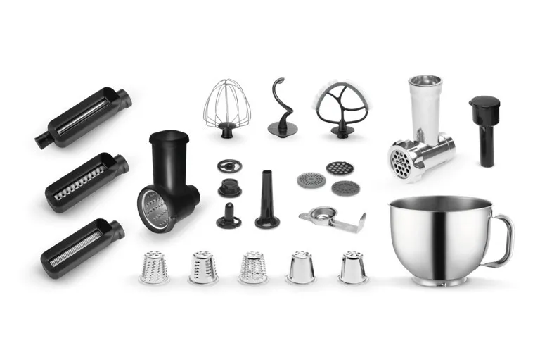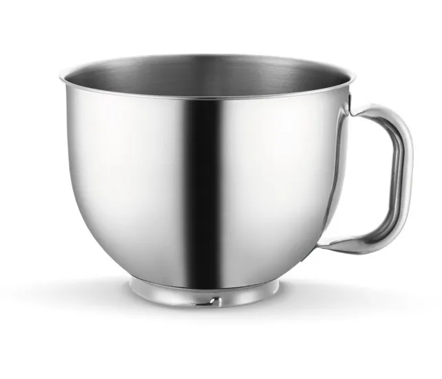 Robot wyposażony jest w przestronną 5-litrową misę ze stali nierdzewnej z praktycznym uchwytem i pokrywką oraz trzy w pełni metalowe mieszadła, które bez problemu poradzą sobie z przygotowaniem kremów, śmietany, piany z białek, majonezu, sosów i ciasta drożdżowego. Flexi trzepaczka z gumową łopatką świetnie nadaje się do lekkich kremów, nadzień i polew - dokładnie przylega do ścian misy i zbiera całą masę bez resztek. Hak do ciasta poradzi sobie nawet z gęstymi ciastami drożdżowymi, a trzepaczka do ubijania nada składnikom lekką, puszystą konsystencję. Dzięki planetarnemu systemowi mieszania mieszadła i hak obracają się nie tylko wokół własnej osi, ale także wokół całej misy, co zapewnia równomierne i dokładne mieszanie składników. Po zakończeniu pracy mieszadła zatrzymują się w idealnej pozycji do ich łatwego wyjęcia - to zasługa systemu Smart Stop Position.