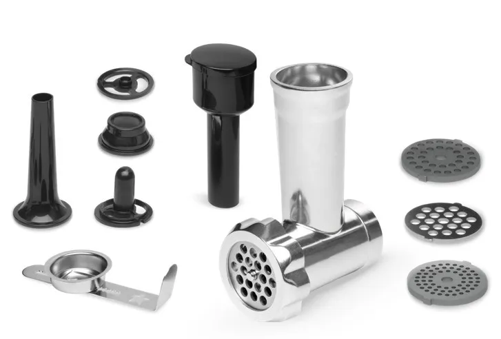 Masz ochotę na domowe burgery, ćevapčići albo lasagne? Dzięki wymiennym końcówkom z trzema rozmiarami oczek łatwo przygotujesz mielone mięso dostosowane do konkretnego przepisu. Drobna siatka idealna jest do pasztetów, średnia do kotletów mielonych lub pieczeni rzymskiej, a największe oczka umożliwią przygotowanie farszu do kiełbas, które następnie bez problemu napełnisz dzięki specjalnej przystawce.