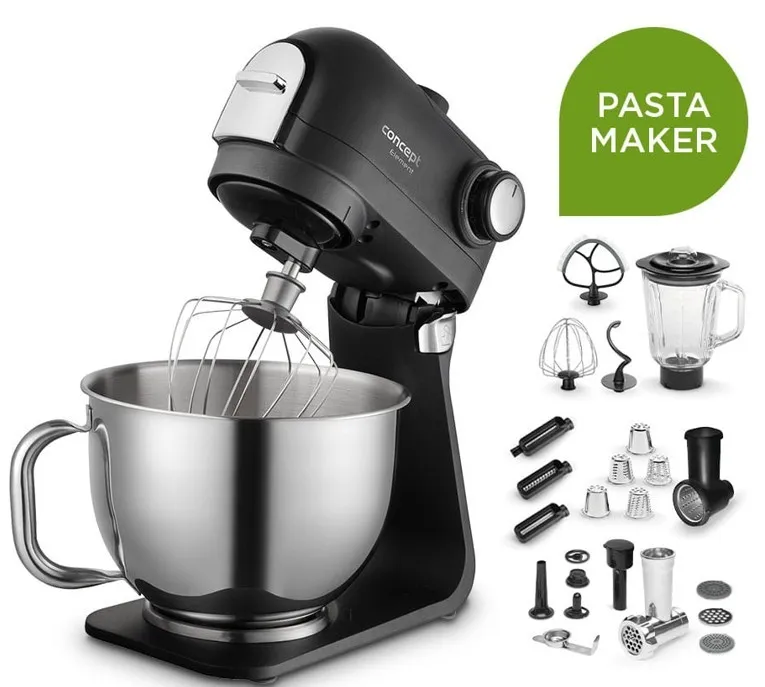 Robot kuchenny ELEMENT w eleganckiej czerni to nie tylko stylowy dodatek, ale przede wszystkim niezawodny pomocnik, który oszczędzi Ci mnóstwo pracy. Poradzi sobie z wyrabianiem ciasta, ubijaniem kremów, śmietany i piany z białek, ale na tym nie koniec - potrafi miksować, trzeć, mielić mięso, napełniać parówki i kiełbasy, robić domowe ciasteczka oraz świeży makaron dzięki przystawce pasta maker. A to wszystko w kompaktowej formie, która oszczędza miejsce na blacie i zastępuje kilka osobnych urządzeń. Jedno urządzenie, wiele funkcji, mniej zmartwień. Przemyślane rozwiązanie dla każdej kuchni!