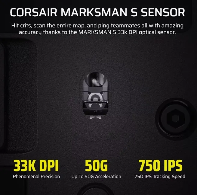 Wymierzaj ciosy krytyczne, skanuj mapę i wysyłaj sygnały do zespołu z zadziwiającą dokładnością dzięki optycznemu czujnikowi MARKSMAN S o rozdzielczości 33 tys. DPI. Może on śledzić ruch z prędkością 750 IPS i przyspieszeniem do 50 G, zużywając przy tym mniej energii niż w poprzedniej generacji.
