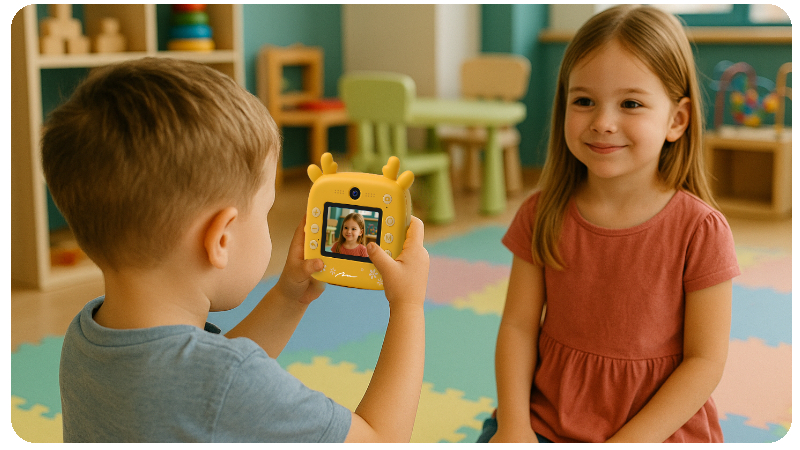 Wybierając SNAPI MT4108, dajesz dziecku znacznie więcej niż zabawkę – dajesz mu narzędzie wspierające rozwój w najważniejszych latach życia. Aparat pobudza kreatywność i myślenie wizualne, ucząc kadrowania, komponowania i opowiadania historii obrazem. Rozwija sprawność manualną poprzez samodzielną obsługę, kolorowanie wydruków i ozdabianie zdjęć. Zachęca do uważnej obserwacji świata i aktywnego poszukiwania ciekawych detali zamiast biernego wpatrywania się w ekran. Uczy cierpliwości oraz budowania relacji dzięki wspólnemu planowaniu albumów i dzieleniu się zdjęciami z bliskimi. Wprowadza także w świat kompetencji cyfrowych, pokazując pierwsze kroki w technologii w bezpieczny i angażujący sposób.