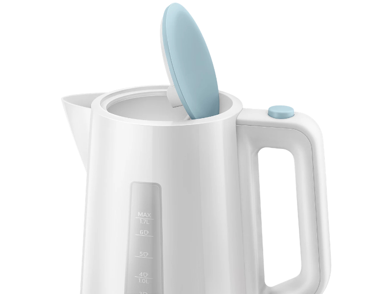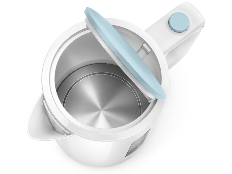 Poziom wody można łatwo odczytać dzięki wskaźnikowi znajdującemu się z boku czajnika. Urządzenie pozwala ugotować dokładnie tyle wody, ile potrzebujesz, dzięki czemu zużywa mniej prądu i wody i pomaga chronić środowisko naturalne. Dodatkowo Pokrywkę można otworzyć bez wysiłku za pomocą przycisku, unikając kontaktu z parą. Duży otwór ułatwia czyszczenie.