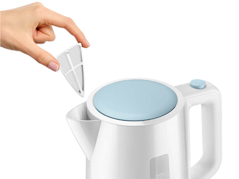 Czajnik można napełnić po otwarciu pokrywki z mechanizmem sprężynowym lub przez dziobek. Bezprzewodowy czajnik znajduje się na obrotowej (360°) podstawie, co umożliwia łatwe podnoszenie i odstawianie urządzenia. Przewód można nawinąć pod podstawą, aby dowolnie dopasować jego długość i łatwo go schować. Po skończonej pracy wyjmowany i nadający się do mycia filtr zatrzymujący kamień gwarantuje czystość wody. Dodatkowo Zaprojektowany w Wielkiej Brytanii kontroler Strix zapewnia wieloelementowy system bezpieczeństwa, chroniący przed włączeniem pustego czajnika i automatycznie wyłączający czajnik po zagotowaniu wody lub po podniesieniu go z podstawy.