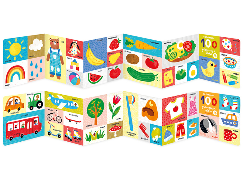 Zapraszamy najmłodszych czytelników na wyjątkową lekturę. Edukacyjny zestaw zawiera 2 długie książeczki harmonijki i scenariusze zabaw, czyli pomysły na rozwijające aktywności. 100 pięknych ilustracji przedstawia to, co bliskie, znane i lubiane przez maluchy: przedmioty najbliższego otoczenia, jedzenie, wesołe zwierzątka czy zabawki. Wspólne oglądanie książeczek i inspirowane nimi zabawy budują bliskość z maluszkiem, pomagają rozwijać zmysły, zdolności poznawcze i przygotowują do mówienia.