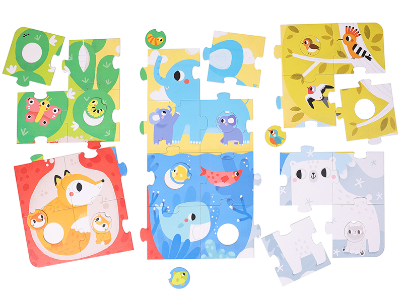 Dziecko rozwija się od najwcześniejszych etapów życia, dlatego warto zadbać o jego rozwój w najlepszy sposób. Pomóc mogą w tym Puzzle do CzuCzu, które przeznaczone są dla dzieci, które ukończyły 2 rok życia. Zestaw składa się z 34 elementowych układanek, które wspomogą rozwój manualny Twojego dziecka. Zademonstruj maluchowi, które zwierzątka pasują do siebie oraz opowiadaj co znajduje się na ilustracjach.