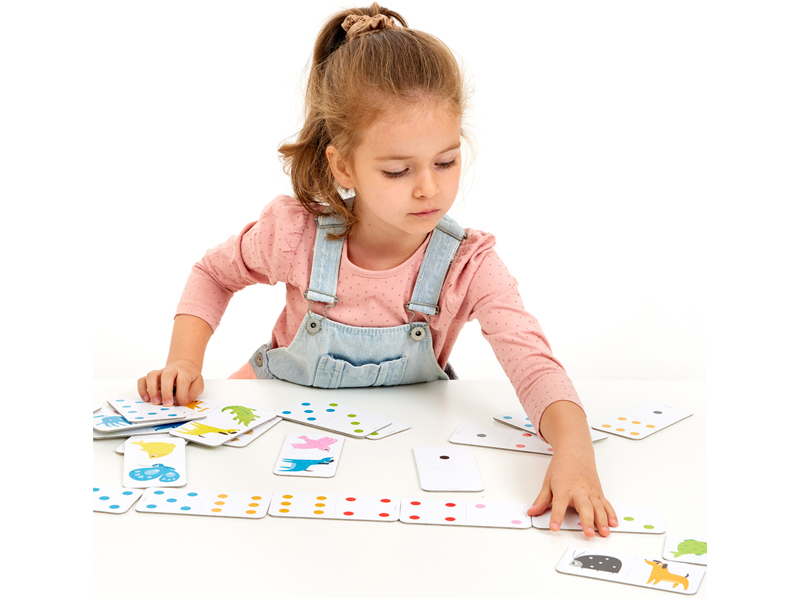 Baw się, dokładając elementy na różne sposoby i wymyślaj własne reguły gry. CzuCzu Gra Domino kolory to pudełko pełne pomysłów na kreatywne zabawy. Jej elementy możesz łączyć na różne sposoby: kolorami, zwierzętami lub tradycyjnymi oczkami. Dzięki grze w klasyczne domino lub łączeniu kolorowych, dużych elementów, dziecko poznaje kolory i trenuje spostrzegawczość oraz logiczne myślenie. Dostosuj poziom trudności zabawy do rozwijających się umiejętności dziecka. Mnóstwo pomysłów na edukacyjne zabawy znajdziesz w poradniku dołączonym do zestawu.